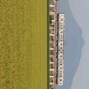 津軽平野は夕陽に照らされ🌼 黄金色です🌾🌾