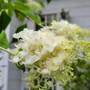 ピラミッドには見えないけど、一応ピラミッドアジサイです😂 白花と葉っぱの淡い緑が、優しさを誘います🎐