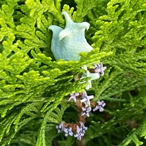 暑かった🥵 夕方涼しくなってから買い物へ 帰りに見つけた児の手柏 花も実もカワイイ🌸 こんな小さい花がこんな大きな実になるの❓