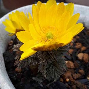 【花友さんちのお庭より】 うちのは植え付けが遅くまだ芽が少し出た程度。 今シーズン花は咲かなくとも育ってくれるかしら?? 植え替えの時期や深鉢のがいいよ~って教えていただきました (*´∀`*)