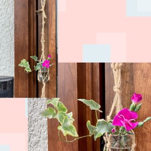 玄関ドアにお花を🌸 麻紐ハンギングとプリンの空き瓶が シンデレラフィット❣️