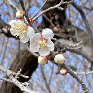 🏷2023百花魁 小田原・下曽我梅林にて ここは食用梅の畑をこの時期開放しています 灰色かかった枝 小ぶりのシンプルな花 いいなぁ〜♡