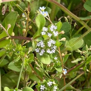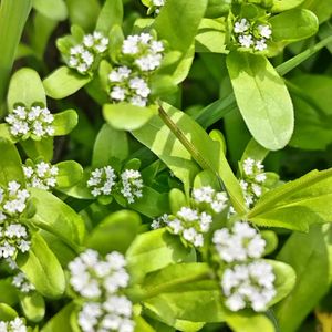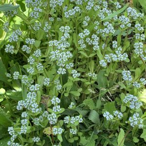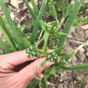 ノヂシャ(スイカズラ科ノヂシャ属) ググってみたら いきなり葉にはアクやクセがほとんどなくとても食べやすい緑黄色野菜 ベビーリーフと同様に葉を生のままサラダに入れるとなかなかの美味😅 可愛いおはなを咲かせる植物でヨーロッパ原産の帰化植物 野原や道端で見つけることができます マーシュやコーンサラダと言う名前で販売されているのだとか… お花は花径1.5mmという非常に小さくて可愛らしいお花は薄い青紫色をしていて 白っぽく見えるほど淡いお色 お花の集まった塊は1cm程度でまるでブーケ💐 花言葉 粘り強い性格 約束を守る