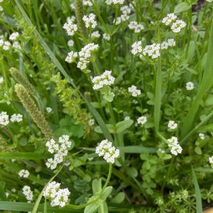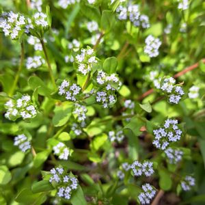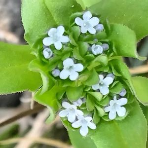 庭で初めて会いました。 直径2mm程の小さな花がかたまって咲いています。この子も私が連れて来たのかな😆🤔 「ノヂシャ」