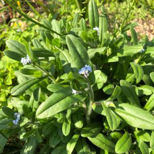 ノヂシャ?? 庭の花壇に 撒いた記憶の無い葉が群生してまして、それでも どんな花が咲くのか見たくて 半年以上待ちました。 冬の間は 冬眠するかのようにじっとしてました。4月に入り暖かい日が来る続くようになって 一昨日あたりから 可愛らしい花が咲き始めました。 お友達の投稿みていたら なんだか 似てる花があり 早速投稿してみました。 正解は 勿忘草 ワスレナグサ