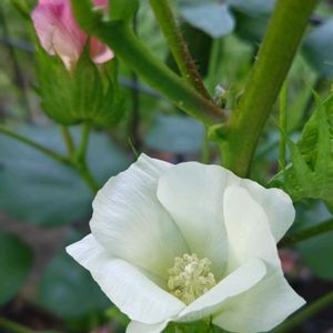 白い水曜日♡🏷️。 公園で育てる綿の花が、綺麗に咲いてます✨️(2025/8/6)。綿は、年末のリース講習会の時の材料になります。 昨日の大谷選手、3試合連続の42号ホームラン🙌🙌🙌。山本由伸投手⚾️、残念でした。大谷選手、今日も頑張れ〜📣。 今日は公園活動日。頑張ろう💪。