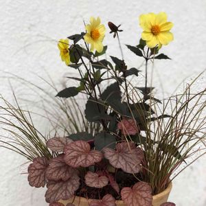 銅葉が綺麗なダリアと、ヒューケラとカレックス