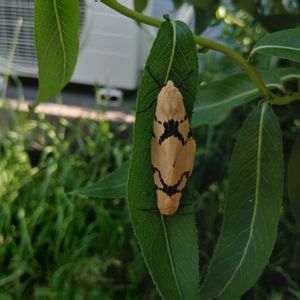 💚🐝ウンリュウヤナギに 二条灯蛾 伸びてきた柳の葉を カットしていたら キレイめの蛾を発見! 去年も見たような 😒 あとで写真を良く観たら なんと 交尾中😆❕しっ 失礼しました❕