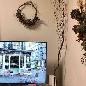 オールシーズンいけそうなユーカリたっぷりバージョン完〜成(๑˃̵ᴗ˂̵)✨ヤッタ よりナチュラル感出したくて、リース台も巻き巻きして作りました♪ 最後の巻終わりがどうしてもいまいちわからないので、やっぱり何かで結ばないと、、(`・ω・´) こちらは縦に置いたバージョン♫