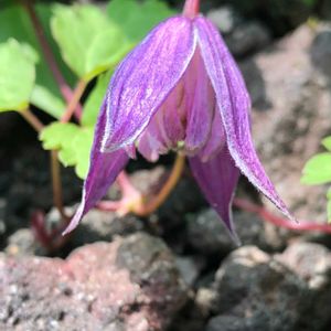 今日のお花🏷️クレマチス 山野草好きの我が家のクレマチスはミヤマハンショウヅル 一昨年開花株を入手したものの、店主にコレは難しいよと釘を刺された通り、東京の酷暑に日陰で青息吐息、厳重な管理体制でも昨年は開花せず。じっと我慢。 冬は地上部が無くなるので、もう芽は出てこないかと諦めて放置していたらなんと(@_@;)知らぬ間に🎶芽が出て膨らんで花が咲いてエッサッサ✌️です 04月29日📸