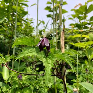 今年もクレマチスの第1号はミヤマハンショウヅルでした ここ数年は株の大きさも変わらないけど春になるとスルスルとツルを伸ばして6月はじめには開花します