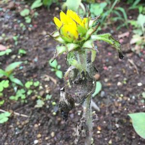 ミニひまわり🌻 連日の雨☂️でダンゴムシとハダニの大量発生で、哀れな姿に!