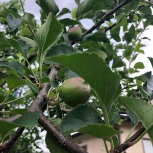 県立病院🏥の日 15:00帰宅しました。 さっそく庭チェック🤣 林檎🍎着果しました🤗 でも...2個😭だけ。 大事に育てよう👍