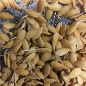 メロンのタネを洗って乾かして、インコにあげようとおもっていたら、仕事から帰って来たら、芽が出てました。 あれ〜〜!今日の湿度のたかさで芽が出てしまったようです。こんなの初めて! ザルに上げておいたのに!😅💦