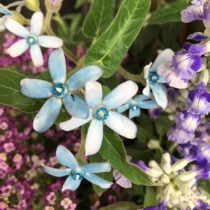 自宅の玄関先で咲いている淡い水色の花です(*´꒳`*)