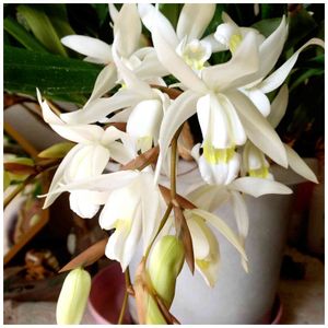 昨年、植え替え予定だった『セロジネ』♡ 鉢から溢れんばかりになり心配してましたが、咲き始めました✨