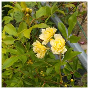 『モッコウバラ』💗 昨年植えた挿し木苗からの、初めての可愛い黄色の花デス😍 薔薇と名の付くお花を初めて植えました😅 凄く沢山の蕾が見えます🤗