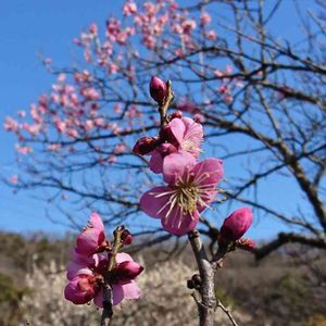輪違い という二色咲?の品種です。 名前からして素敵✨ 岐阜市の梅林公園は、早咲き〜遅咲きまで様々な梅が植えられていますが、今はまだ早咲き種が楽しめる段階でした。