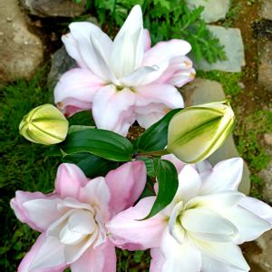 ローズリリー アナスカ 涼しく過ごしやすい日が続いて 心も身体もホッとしています☺️ 皆様いかがお過ごしですか? 昨年秋、3品種のローズリリーを植え付けました。 前回投稿のラファエラさんも、純白で心が洗われるような佇まいがステキ💓 アナスカさんは、白い花びらに 「ポッ」と、頬を染めたような 薄いピンク色がのっています🌸 高原の少女のように純粋で輝かしく感じます。 暑さと、強い陽射しから守られて、 美しく咲いた様子を見ることができてうれしいです☺️💕
