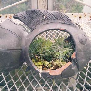 名古屋市農業センターdelaファーム温室内のステキな寄せ植え。何が植わっているかは知りませんがステキ…です。 日に当たりにくそうではありますが…🌱🌿中に植わってるのは一応多肉、なのかしら…?