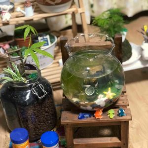 部屋の魚くん(寝てます🐟) 最近いつもテラリウムレイアウトの事しか考えてない 頭バンクしそうだな 素材も足りなくなってきた😣 やっぱプロたちはすごいや🙇 😵😵😵😵😵😵😵