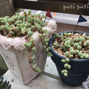 昨日届いたムーンフェアリーさんをダイソー産の鉢に植え替えました😁🎶 そして、ちっちゃい鉢を発見✨ 水差ししてたドルフィン🐟さんから根っこ出てきたので、先日投稿したヘキギョレンさんとお揃いにしたくて、ヘキギョレンさんもお引っ越し(笑) モリモリ目指すぞぉ~🙋🎶