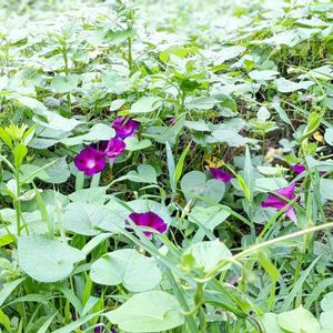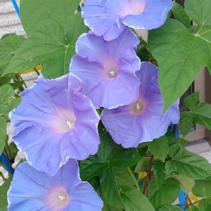 先日斜面のお隣との境界際に草の中に咲いていた小振りな朝顔… 5日に蕾を6日に咲いたお花を見て頂きました これをググると「崑崙朝顔コンロンアサガオ」と聞き慣れない名前 お花も葉っぱもそっくりに思えます 翌朝これを保護すべく 小屋のデッキで壊れてしまった以前のテーブルの脚を観察している植物達を避けながら やっとこさっとこ引きずって行きました 設置してから朝顔の周りの草や蔓を慎重に抜いたり切ったり… ところが暫くしてから手にしていたのは 何と膨らんだ蕾の付いた蔓! あ〜ぁそのショックたるや…!!😱😮💨 その日はどうにも夏バテっぽく感じ 滅多にしないお昼寝をする事となりました それは兎も角 切ってしまった蔓は取り敢えず小屋のデッキのテーブルの飲みかけの麦茶のペットボトルの中に挿しておきました 昨日はボトルの中で一花哀れに小さく咲いて… そして今朝!…何と紫のお花がボトルの外で美しく咲いているではありませんか!💜 これは麦茶を水に換えてあげた方がいいか それとも麦茶のミネラルが元気を保ってくれる?… どんなものでしょうか?😅💦 保護した根元からは幸いもう1本蔓が出ていて 未だ小さい蕾もありましたので 何とかここで蔓を巻き付けながら育ってくれるといいなと願っています