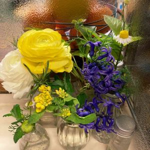 今朝のキッチンフラワー💗切り花です💗庭では、咲く準備中の、蕾が、いっぱい😀