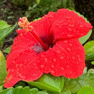今年初の赤いハイビスカス開花🌺 真夏なのに現在18度。大雨。長袖。 大雨警報の地域の方々、どうぞ命を守ることを最優先に気をつけてください🙏