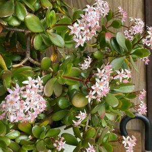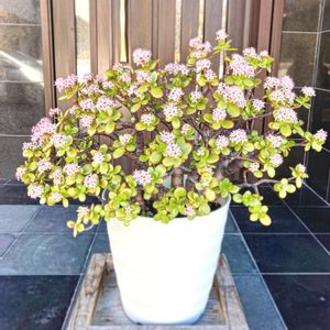 待ちに待った 金のなる木(花月)の花が 咲きました⸜(*´ᗜ`*)⸝ ピンクの小花で𝐊𝐚𝐰𝐚𝐢𝐢─❤︎