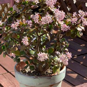 金のなる木✨👏✨ 今年は、いっぱいの花が咲いて😊 少し☀️お外へね。 可愛い薄ピンク色に💕💕💕