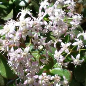 お花屋さんに寄ったら何と 花の咲いている金のなる木が ありました。 こんな花が咲くんですね 我が家の金のなる木は一度も咲く気配を見せたことは無いのです。 咲かせるためのコツなどあるのでしょうか