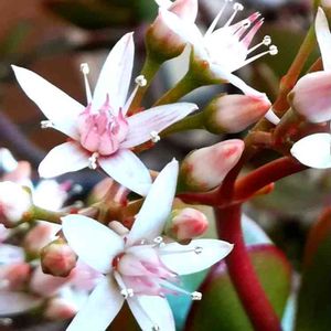 お金のなる木の花🌸 夏を、水をあげないように ギリギリのとこで過ごさせると 花が咲くそうですよ😊 ウチにいた金のなる木は、 それを知らずに、せっせと 水をあげてたので、一度も 咲かなかったんだな〜😅 🌱に危機‼️と感じさせないと 咲かないんだね〜🥺