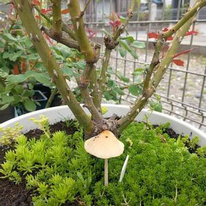 薔薇の下に キノコ!🍄キタ━(゚∀゚)━キタ━(゚∀゚)━! 梅雨ですからね(笑)