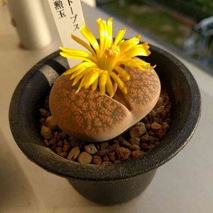 ベランダのリトープスから黄色の蕾が ニョキニョキ🌻してきました😲😲 割れ目ちゃん…可愛いカワ(・∀・)イイ!!