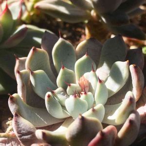 エケベリアたちに花芽が見えてきました。 花芽は3年経ってから…な感覚でしたが この子はうちに来てすぐに花芽を付けています。 ということはサイズはこれよりは大きくならなさそう? 春の植え替えは無しで大丈夫かな〜