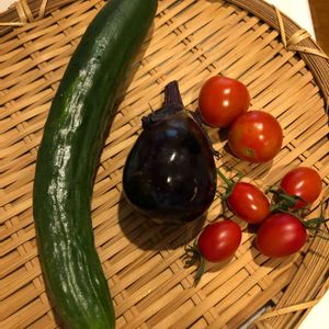 とりあえず朝どり野菜😚トマトや青紫蘇、ほか、ちゃんとみてない。また、行かないと😅