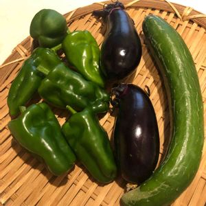 今朝の朝取り野菜、きゅうりもナスもこの前の風で擦れて皮が硬そう、ミニトマトは水分過多で身割れが😱 トマトもきゅうりも終わりかなあ、苗木がそう言ってるような😓 8月半ば、これからどうしたものかです