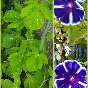 今日のお花 💜アサガオ🌿 (肥後の手まり) 昨年の花の種から…🌿 現在まだ葉っぱばかりです🌿 爽やかに咲いてくれますように…💜💜💜