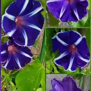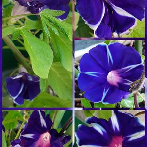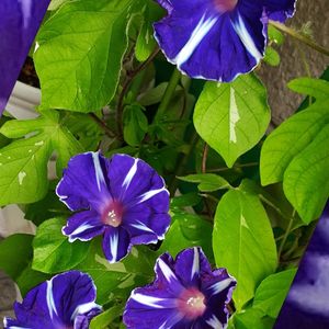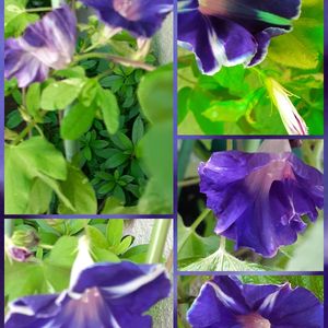 💜アサガオ観察記⑦ (肥後の手まり) 今朝は4輪 16、17、18、19番目 ツルの下方で鉢からはみ出すように咲いていました🙆🏻 こんなに固まって咲いたのは初めてです💜💜💜💜 。:+* ゚ ゜゚ *🌿🌿+:。:+* ゚ ゜゚ 🏷️ 乙女色クラブ