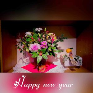 〜✿メインのお部屋✿〜 生け花完成しました✩.*˚ ❁❀✿✾花材❁❀✿✾ 葉牡丹 菊 若松 千両 南天 ロウバイ スプレー菊 松ぼっくり着き松 百合 日頃の感謝を込めて 生けました☽︎𓂃 𓈒𓏸◌ どうぞよろしくお願いします (❁ᴗ͈ˬᴗ͈)✩.*˚🐮