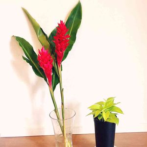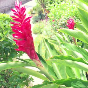 レッドジンジャー ショウガ科 ニューカレドニアやソロモン諸島をはじめとする太平洋諸島に分布しています。 鮮やかな赤色の苞が特徴です。 苞の中に白色の小さな花が咲きます。