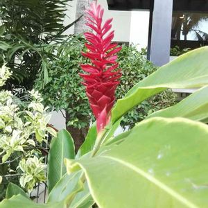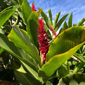 レッドジンジャー その名の通りショウガ科のお花💠 でもこの赤いのは💠ではなくて苞 ほんとのお花💠は白いんてすって✨ それは見れなかったので残念😣💦⤵️ ときわミュージアムにて