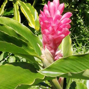 和名::赤穂月桃(アカボゲットウ) ショウガ科 鮮やかな赤い苞が特徴。
