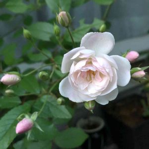 🌹フェリシア ずっと黄モッコウの下にあった鉢植え 2年目のフェリシアを移動しました。 とっても良い香り😍後ろのカラーリーフは 冬越ししたラトゥールノワールの葉😊 バラが散った後はこちらが咲き始める予定 次にコラボするのは去年と同じブルーの🫐 プルンバーゴ(ルリマツリ)です😃 この3m先の小径には🌹ラベンダーラッシーと 西洋ニワトコブラックレースが咲いています