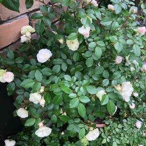 🌹グリーンアイス 小さな小径🌹夢乙女の隣に咲いています 鉢から根を張り出して年々大きくなっています😅 色の変化が楽しいバラさんです😍