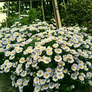 今晩わー。 天気予報外れで、時々日が差して蒸し暑かったわ。 達磨菊は横に増えていく。 高さ2メートルのコンクリート壁はお父ちゃんの一人キャチボールの場所です。 達磨菊は横に増えていくが、フエンスから下に垂れ下がっていく。 19年11月3日に同じ場所の達磨菊の投稿しました。 昨年は横に横に増えて、垂れ下がる事がなかった。 左側にも垂れ下がってますが、全体が撮れなかった。 私は下りるのが怖いのでお父ちゃんに撮ってもらいました。 何枚も撮ってもらいましたが、何枚か撮っては脚立を使って、私に渡す。 まあ、これでいいか😅 明日は☔予報です。