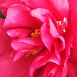 椿→3🌿🌸 くす玉みたいにいくつも花が集まってるみたい… 黄色の蕊が あちこちに見えます🌸 華やかなきれいな椿です💞 実際は赤色がもう少し暗い色です💞✨