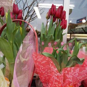 真っ赤な鉢植え チューリップの花❢ 980円なり… あなたなら買いますか??…(*˘︶˘*).。.:*♡💝💮✿🌷🌷🌷✿🌸💮💝🐾🌿😀…(´∀`*)ウフフ💝🐾…