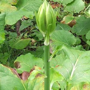 神社の境内にて 蓮のつぼみ?じゃない 茎はアスパラ?まさか なんだろう❔ はい 大姥百合でした 👏💓 金曜日の蕾たち に参加します